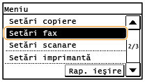 Toate setările pentru fax sunt listate cu o scurtă descriere. Setările implicite sunt marcate cu un semn (
