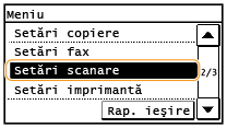Toate setările pentru scanare sunt listate cu o scurtă descriere. Setările implicite sunt marcate cu un semn (