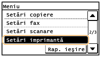 Setaţi numărul de rânduri imprimate pe o pagină de la 5 la 128. Această setare este modificată automat în funcţie de setările specificate în <Format hârtie implicit> şi în <Orientare>.