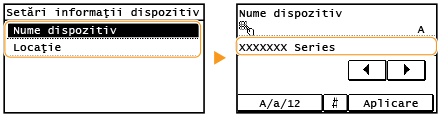 Selectaţi <Nume dispozitiv> sau <Locaţie>