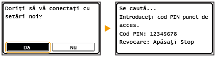 Codul PIN trebuie să fie înregistrat într-un interval de 10 minute după ce atingeţi <Da> de la pasul 7.