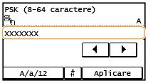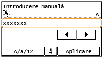 Introduceţi cheia de reţea utilizând tastele numerice şi atingeţi <Aplicare>. Introducerea textului