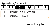 Configurarea aparatului pentru a scana către Directoare partajate Destinaţiile disponibile pentru directoare partajate sunt limitate la destinaţiile înregistrate în Agendă. Pentru a specifica o destinaţie folosind Agenda, este nevoie să înregistraţi înainte destinaţii pentru directoare partajate.