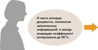 В этом случае следует задать для коэффициента масштабирования при копировании значение 95 % и установить его как параметр по умолчанию. После этого копирование можно продолжать, не изменяя коэффициент масштабирования. Изменение параметров по умолчанию