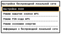 Если беспроводное соединение установлено с помощью выбора маршрутизатора беспроводной сети, то для метода WEP-аутентификации задано значение <Открытая система>, а для метода шифрования WPA/WPA2 — <Авто> (AES-CCMP или TKIP). Чтобы выбрать значение <Общий ключ> для проверки подлинности WEP или значение <AES-CCMP> для шифрования WPA/WPA2, необходимо настроить подключение, используя метод ввода вручную ( Настройка подключения путем детального задания параметров).