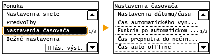 Ak chcete zmeniť obrazovku, ktorá sa automaticky zobrazí, keď stroj určenú dobu zostane v nečinnosti: