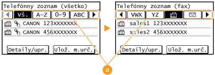 Telefónny zoznam vám umožňuje špecifikovať miesto určenia výberom zo zoznamu uložených miest určenia alebo pre miesta určenia s menami príjemcov vyhľadaním podľa mena.