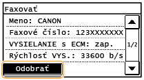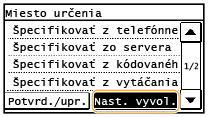 Keď je voľba <Obmedziť opätovné odosielanie z výpisu> nastavená na <Zap.>, nemôžete použiť túto funkciu. Deaktivácia použitia predtým použitých miest určenia