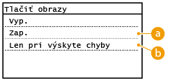 Vyberte možnosť <Zap.> alebo <Len pri výskyte chyby>