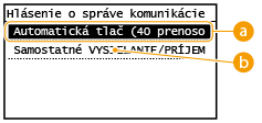 Vyberte voľbu <Zap.>, ak chcete automaticky tlačiť hlásenie po 40 prenosoch, alebo vyberte voľbu <Vyp.>, ak nechcete automaticky tlačiť hlásenie.