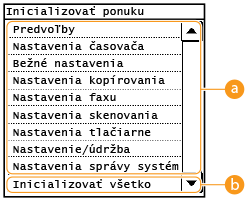Ak chcete inicializovať nastavenia položiek <Nastavenia siete> a <Nastavenia správy systému>, pozrite si časť Inicializácia nastavení správy systému.