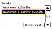 Všetky nastavenia správy systému sú uvedené s krátkymi opismi. Predvolené nastavenia sú označené krížikom (  ).