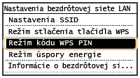 Ak váš bezdrôtový smerovač podporuje režim kódu PIN, vygenerujte v stroji kód PIN a zaregistrujte ho do sieťového zariadenia.