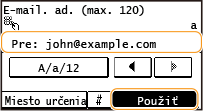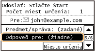 Keď špecifikujete viacero miest určenia, druhé a ďalšie miesta určenia musia byť uložené v telefónnom zozname. Pre kópie (Cc) a skryté kópie (Bcc) môžete špecifikovať iba miesta určenia uložené v telefónnom zozname. Ak chcete použiť telefónny zoznam, musíte najprv dokončiť potrebný postup registrácie.