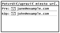 Telefónny zoznam vám umožňuje špecifikovať miesto určenia výberom zo zoznamu uložených miest určenia alebo pre miesta určenia s menami príjemcov vyhľadaním podľa mena.