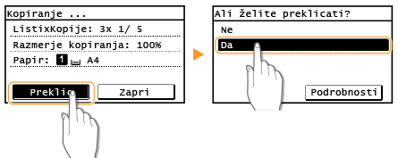 na nadzorni plošči. Kopiranje lahko prekličete tudi zatem, ko preverite stanja kopiranja.