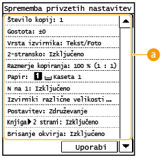 Izberite postavko, ki jo želite nastaviti, in spremenite njeno privzeto vrednost.