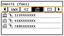 Prikaz vseh prejemnikov, registriranih v imeniku. Spodaj glejte oznake prejemnikov.