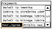 / za menjavanje izbranih prejemnikov. Izberite prejemnika, ki ga želite izbrisati, in pritisnite . |