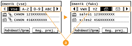 Z imenikom lahko izbirate prejemnike tako, da jih izberete s seznama registriranih prejemnikov ali iščete po imenu prejemnika.