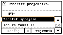 Dohodni klic zvoni. Dvignite slušalko. Če zaslišite pisk, se za sprejem faksov dotaknite <Začetek sprejema>.
