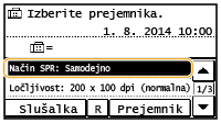 Če želite natisniti informacije, kot sta datum in ura sprejema, na dnu prejetih dokumentov: Noga strani pri SPR