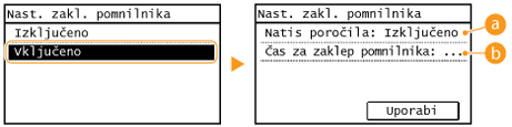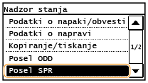 Omogoča izpis poročila o rezultatu SPR vsakič, ko je v pomnilnik shranjen dokument. Če želite natisniti poročila, se dotaknite <Vključeno>. Prav tako morate možnost <Poročilo o rezultatu SPR> nastaviti na <Vključeno>.