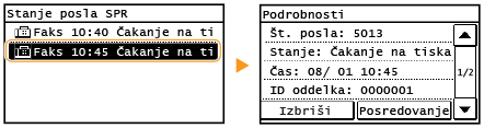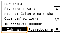 Preverite lahko podrobnosti o dokumentih, shranjenih v pomnilniku, vključno s številkami faksa pošiljatelja in številom poslanih strani, nato pa nepotrebne dokumente izbrišete.