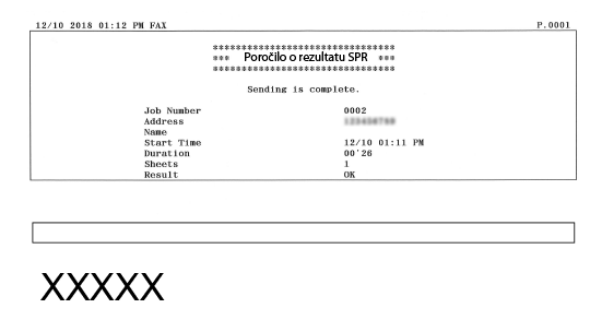 "OK" označuje uspešen prenos dokumenta, "NG" and trimestno število (koda napake) označuje neuspešen prenos (