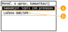 Možnosti <Poročilo o upravljanju komuniciranja> ne morete izbrati, če je nastavljena možnost <Izključeno> za <Prikaz dnevnika poslov> v meniju <Nastavitve upravljanja sistema>.