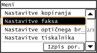 Zraven vseh nastavitev faksiranja je kratek opis. Privzete nastavitve so označene z znakom (