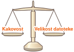 Pri pretvarjanju skeniranih dokumentov v format JPEG lahko določite razmerje stiskanja datoteke. <Majhna: Prioriteta pomnilnika> zagotavlja višje razmerje stiskanja in ustvari manjše datoteke z nižjo kakovostjo slike. Nasprotno pa <Velika: Prioriteta kakovosti slike> zagotavlja nižje razmerje stiskanja in ustvari večje datoteke z višjo kakovostjo slike.