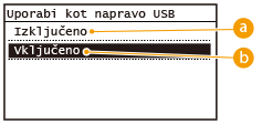 Vrata USB na desni strani naprave lahko onemogočite. Če ta vrata onemogočite, naprava ne bo mogla komunicirati z računalnikom prek USB.