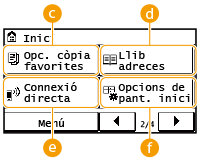 La pantalla <Inici> d'operacions i pantalles per especificar la configuració apareix al monitor. També podeu veure el progrés del treball i els missatges aquí. Toqueu el monitor per operar-hi.