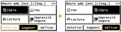 Toqueu <Anterior> o <Següent> per moure el botó, i toqueu <Aplicar>.