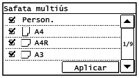 Les mides de paper sense marca de verificació es mostren a la pantalla <Mida de paper (altres mides)>.