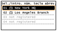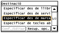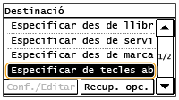 Mostra totes les destinacions desades a la Llibreta d'adreces. Per obtenir informació sobre les marques que hi ha al costat de les destinacions, vegeu les explicacions següents.