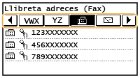 Mostra destinacions amb els noms dels destinataris els primers caràcters dels quals corresponen als caràcters de la pestanya seleccionada.