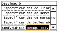 Si l'opció <Restringir reenviament des del registre> està establerta com a <On>, no podeu utilitzar aquesta funció. Desactivació de l'ús de destinacions utilitzades anteriorment