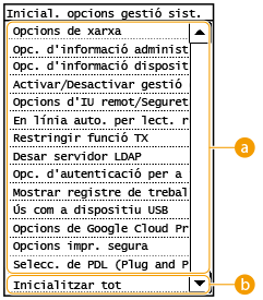 Per inicialitzar els ajustos a <Opcions de xarxa>, també podeu tocar <Menú>