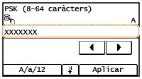 Introduïu la clau de xarxa amb les tecles numèriques i toqueu <Aplicar>. Introducció de text