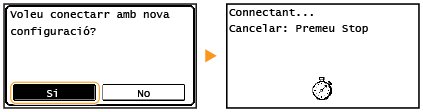 ![]() Quan <Sistema obert> està seleccionat Quan es connecta a una xarxa LAN sense fil, l'equip produeix un error d'autenticació si l'autenticació de clau compartida s'estableix a l'encaminador sense fil. Si això passa, l'equip canvia automàticament l'opció a <Clau compartida> i recupera la connexió. |