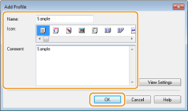 Si feu clic a [Edita...], situat a la dreta de [Perfil] a la pantalla que es mostra al pas 1, podeu canviar el nom, la icona o el comentari dels perfils que heu desat anteriorment. En tot cas, podeu editar els perfils desats prèviament.