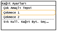Kağıt çekmecesi 1 ya da kağıt çekmecesi 2 için kağıt kaydetmek isterseniz