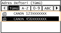 tuşuna basın ve <Adres Deftri> öğesine dokunun.