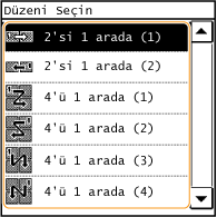 <2'si 1 arada>/<4'ü 1 arada> kullanılması kopya oranını otomatik olarak azaltır (kopya oranı ekranda gösterilir).