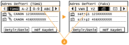 Adres Defteri, kayıtlı hedefler listesinden seçerek veya alıcı adlarını içeren hedefleri ada göre arayarak bir hedef belirtmenize olanak sağlar.