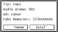 <Evet> öğesine dokunun.2. adımda Grup Arama belirlediyseniz, "XX hedef(ler)" görüntülenir. <Hedef Sayısı > öğesine dokunmak, gruba kayıtlı hedefleri görüntüler.