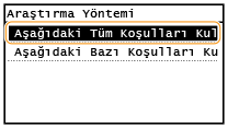 Arama sonuçlarını görüntülemek için koşulları seçin.