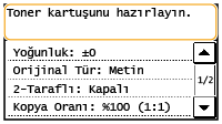 Bir toner kartuşu boşalmak üzereyken makine bir mesaj görüntüler. Herhangi bir işlem gerçekleştirmeden yazdırmaya devam ederseniz yazdırma kalitesinin düşeceğini unutmayın. Kalan toner düzeyini ekranda kontrol edebilirsiniz.